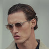 Crystal acetate combined with brown-gradient lenses, anchored by intricately detailed metal temples. A classic design that seamlessly blends warmth, sophistication and a elegant shaded touch.